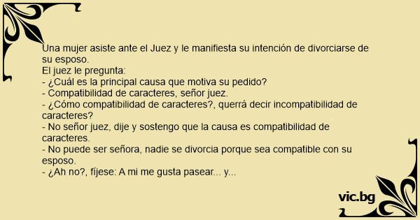 - No puede ser señora, nadie se divorcia porque sea compatible соn su esposo.