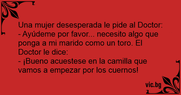 - Ayúdeme por favor... necesito algo que ponga a mi marido como un toro. El Doctor le dice: