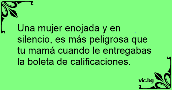 Una mujer enojada y en silencio, es más peligrosa que tu mamá cuando le entregabas la boleta de calificaciones.