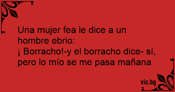 Una mujer fea le dice a un hombre ebrio:
