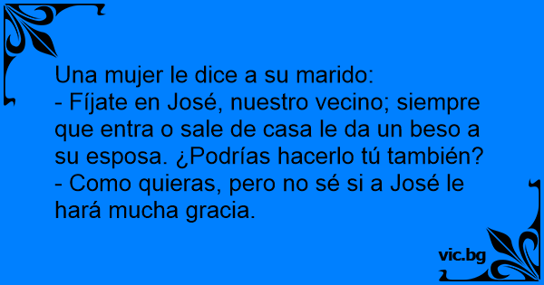 - Fíjate en José, nuestro vecino; siempre que entra o sale de casa le da un beso a su esposa. ¿Podrías hacerlo tú también?