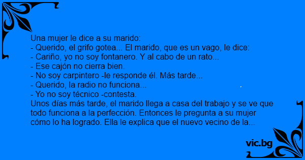- Querido, el grifo gotea... El marido, que es un vago, le dice: