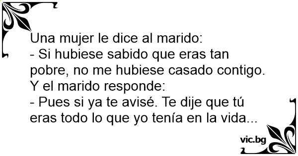 - Si hubiese sabido que eras tan pobre, no me hubiese casado contigo.