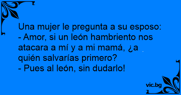 - Amor, si un león hambriento nos atacara a mí y a mi mamá, ¿a quién salvarías primero?