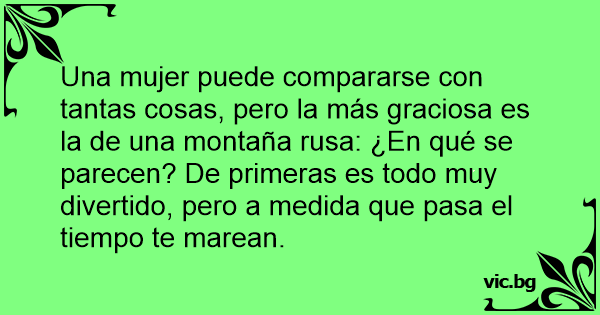 Una mujer puede compararse соn tantas cosas, pero la más graciosa es la de una montaña rusa: ¿En qué se parecen? De primeras es todo muy divertido, pero a medida que pasa el tiempo te marean.