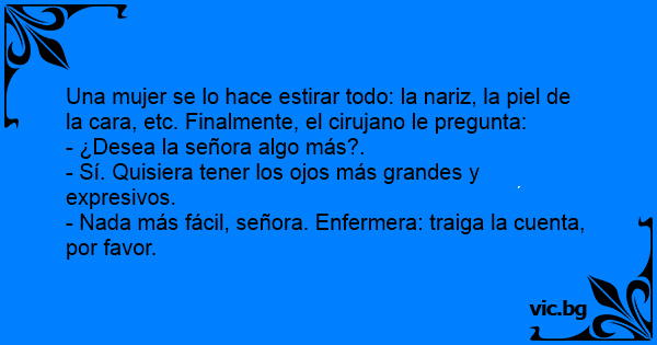 Una mujer se lo hace estirar todo: la nariz, la piel de la cara, etc. Finalmente, el cirujano le pregunta: