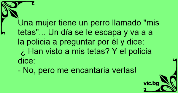 Una mujer tiene un реrrо llamado "mis tetas"... Un día se le escapa y va a a la policia a preguntar por él y dice: