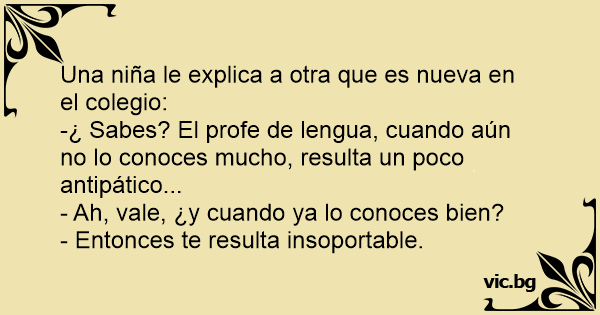 -¿ Sabes? El profe de lengua, cuando aún no lo conoces mucho, resulta un poco antipático...