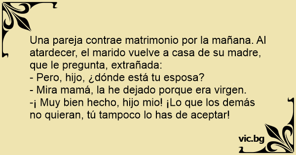 Una pareja contrae matrimonio por la mañana. Al atardecer, el marido vuelve a casa de su madre, que le pregunta, extrañada: