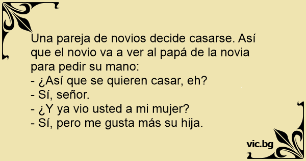 Una pareja de novios decide casarse. Así que el novio va a ver al papá de la novia para pedir su mano:
