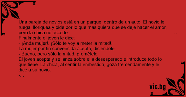 - ¡Anda mujer!. ¡Sólo te voy a meter la mitad!.