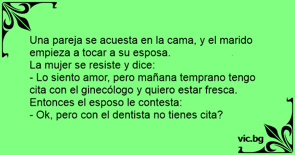 Barbatul:Nevasta, nu ai chef de sex? Nevasta:Nu pot ca maine merg la ginecolog, B: (dupa 5 minute)Da la dentist te duci??