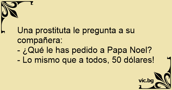 Deux prostituées discutent. La première dit : -Ta demandé quoi au père noël ? La deuxième répond : - Bah... 50 euros comme tous les autres.