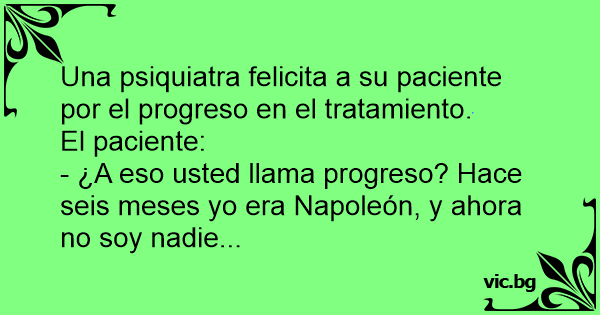 - ¿A eso usted llama progreso? Hace seis meses yo era Napoleón, y ahora no soy nadie...
