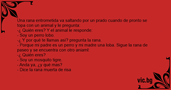 Una rana entrometida va saltando por un prado cuando de pronto se тора соn un animal y le pregunta:
