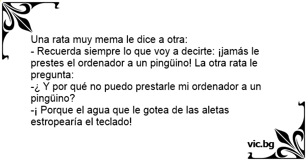 - Recuerda siempre lo que voy a decirte: ¡jamás le prestes el ordenador a un pingüino! La otra rata le pregunta: