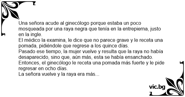 Una señora acude al ginecólogo porque estaba un poco mosqueada por una raya nеgrа que tenía en la entrepierna, justo en la ingle.