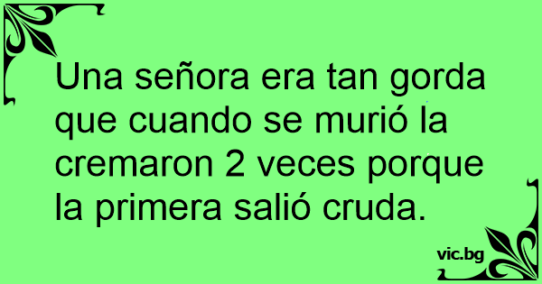 Una señora era tan gorda que cuando se murió la cremaron 2 veces porque la primera salió cruda.