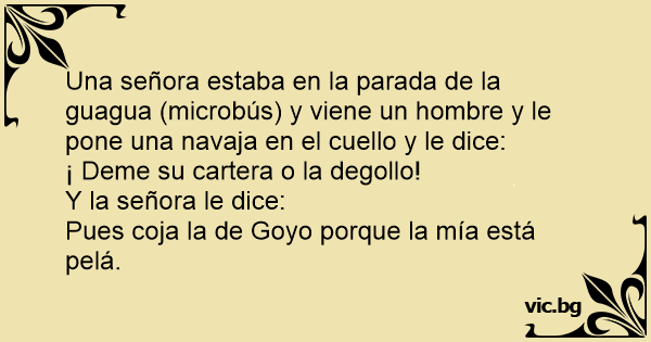 Una señora estaba en la parada de la guagua (microbús) y viene un hombre y le pone una navaja en el cuello y le dice: