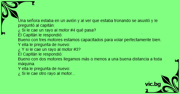Una señora estaba en un avión y al ver que estaba tronando se asustó y le preguntó al capitán:
