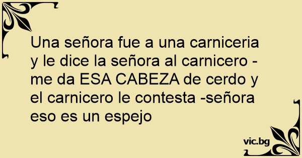 Una señora fue a una carniceria y le dice la señora al carnicero -me da ESA CABEZA de cerdo y el carnicero le contesta -señora eso es un espejo