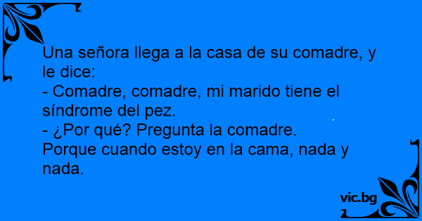 - Comadre, comadre, mi marido tiene el síndrome del pez.