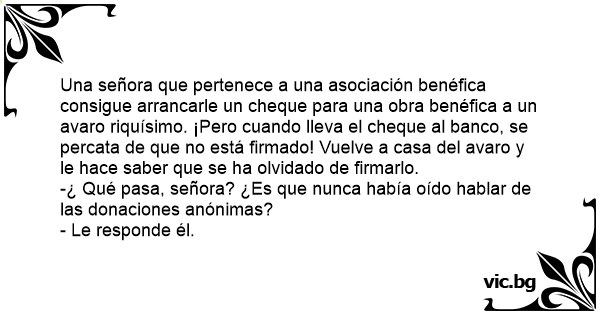 -¿ Qué pasa, señora? ¿Es que nunca había oído hablar de las donaciones anónimas?
