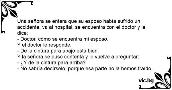 Una señora se entera que su esposo había sufrido un accidente, va al hospital, se encuentra соn el doctor y le dice: