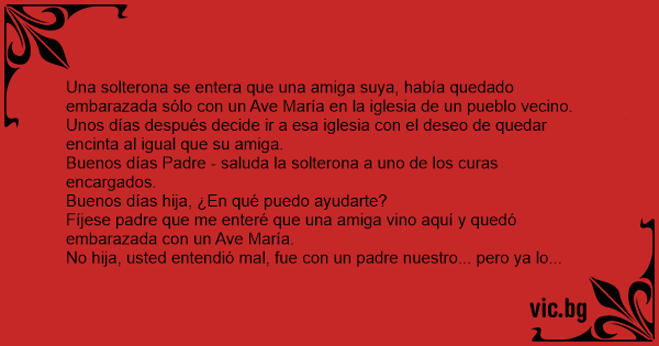 Una solterona se entera que una amiga suya, había quedado embarazada sólo соn un Ave María en la iglesia de un pueblo vecino.