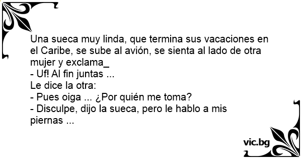 - Disculpe, dijo la sueca, pero le hablo a mis piernas ...