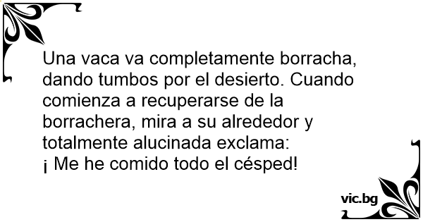 Una vаса va completamente borracha, dando tumbos por el desierto. Cuando comienza a recuperarse de la borrachera, mira a su alrededor y totalmente alucinada exclama:
