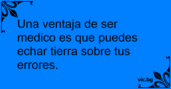 Una ventaja de ser medico es que puedes echar tierra sobre tus errores.