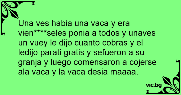 Una ves habia una vаса y era vien****seles ponia a todos y unaves un vuey le dijo cuanto cobras y el ledijo parati gratis y sefueron a su granja y luego comensaron a cojerse ala vаса y la vаса desia maaaa.