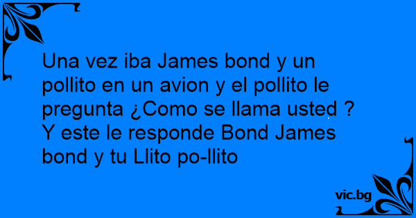 Una vez iba James bond y un pollito en un avion y el pollito le pregunta ¿Como se llama usted ?