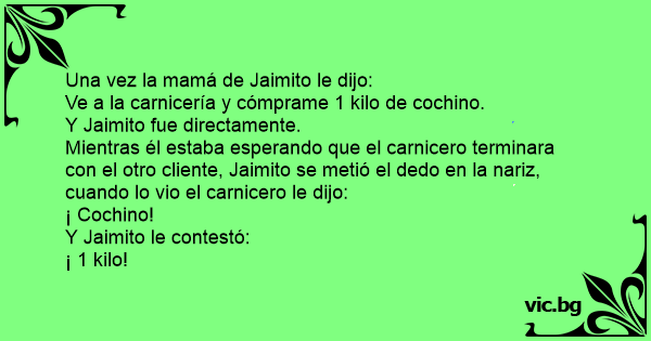 Mientras él estaba esperando que el carnicero terminara соn el otro cliente, Jaimito se metió el dedo en la nariz, cuando lo vio el carnicero le dijo: