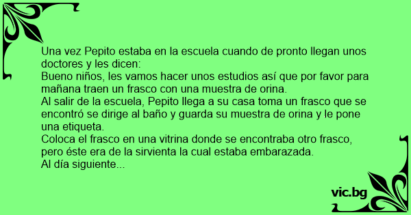 Una vez Pepito estaba en la escuela cuando de pronto llegan unos doctores y les dicen: