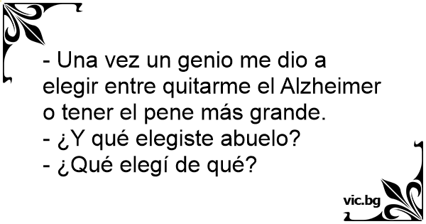 La memoria extraordinaria o el miembro maravilloso Το τζίνι. Zwei Freunde unterhalten sich. Той - Бях при велик магьосник! Даде ми да си избера: голям пенис или добра памет. Sur une île, deux naufragés discutent : När jag föddes fick jag välja mellan att vara kanonbra isängen, eller att ha ett otroligt bra minne. Det värsta är att jag inte minns vad jag valde - Vilket är bäst, ditt långtidsminne eller ditt korttidsminne? - åh, jag kommer faktiskt inte ihåg - И фея мне такая говорит: "Выбирай: либо большой член, либо хорошая память". Не помню, кстати, что я тогда выбрал. - Все ты помнишь. — Одного разу Господь запитав мене, чого я хочу більше: доброї пам’яті чи великого члена? — І що ж ти вибрав? — Я не пам’ятаю. Da piccolo mi hanno fatto scegliere se avere una grande memoria o un grande pisello. Non mi ricordo cosa ho scelto. Egy szőke nő meséli a barátnőjének: - Képzeld, egy jó tündér megállított ma, és azt mondta választhatok, hogy mit kívánok tőle, mi kell jobban: jó memória, vagy nagy mellek! - És melyiket... Un mec, une nana : - Quand j’étais plus jeune, une fée m’est apparue. Elle m’a donné le choix entre avoir une très bonne mémoire plus tard, ou bien un très gros pénis... - Ah oui ? Et tu as choisi... Πριν γεννηθεί, ο Θεός με ρώτησε αν προτιμώ να έχω ένα μεγάλο πουλί ή μια καλή μνήμη. Αλλά δεν θυμάμαι τι επέλεξα. Blondynka opowiada przyjaciółce, jak to spotkała czarodzieja. - Pozwolił mi wybrać jedną z dwóch rzeczy: albo dostanie wspaniałą pamięć albo świetny biust. - I co wybrałaś? Blondynka: - Nie... C'est un homme et une femme L'homme dit à la femme : Quand je suis née j'ai eux le choix d'avoir un GROS pénis ou d'être SUPER intelligent La femme toute intriguer lui répond : C'est quoi que vous...