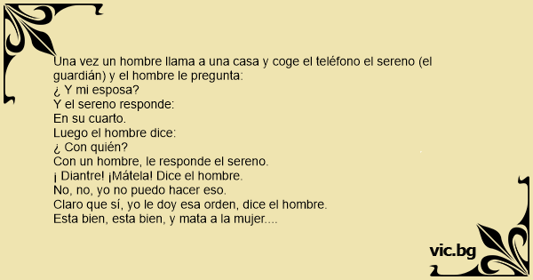 Una vez un hombre llama a una casa y coge el teléfono el sereno (el guardián) y el hombre le pregunta: