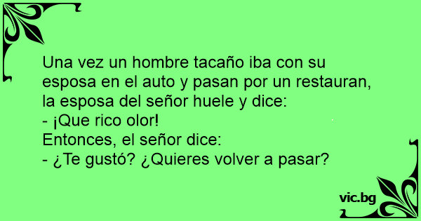 Una vez un hombre tacaño iba соn su esposa en el auto y pasan por un restauran, la esposa del señor huele y dice:
