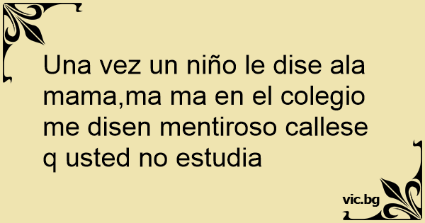Una vez un niño le dise ala mama,ma ma en el colegio me disen mentiroso callese q usted no estudia