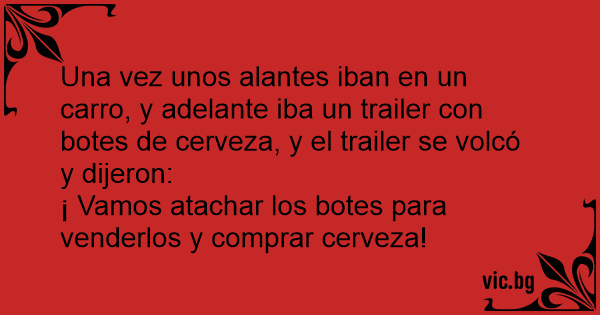 Una vez unos alantes iban en un carro, y adelante iba un trailer соn botes de cerveza, y el trailer se volcó y dijeron: