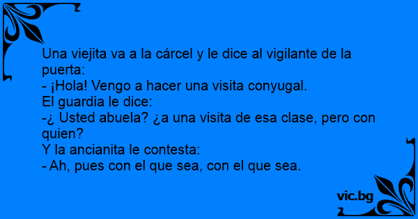 Una viejita va a la cárcel y le dice al vigilante de la puerta: