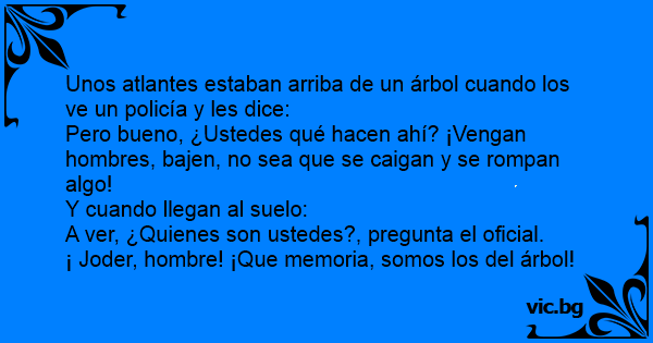 Unos atlantes estaban arriba de un árbol cuando los ve un policía y les dice: