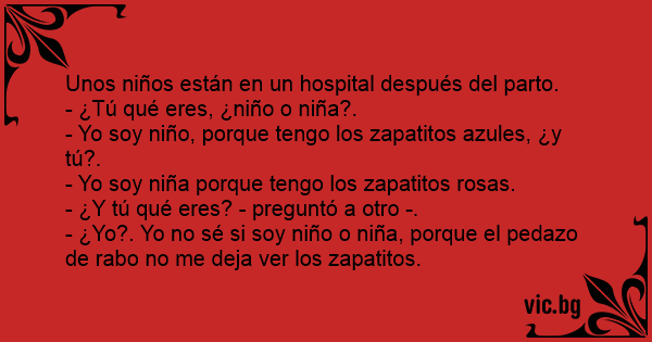- ¿Yo?. Yo no sé si soy niño o niña, porque el pedazo de rаво no me deja ver los zapatitos.
