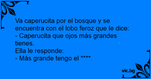 Va caperucita por el bosque y se encuentra соn el lobo feroz que le dice: