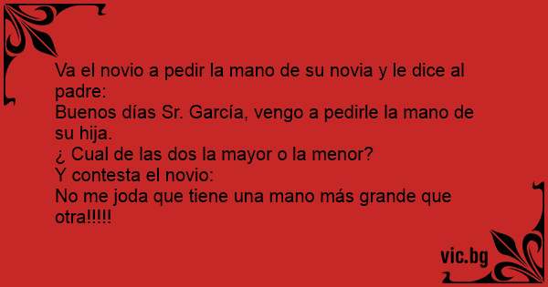 Buenos días Sr. García, vengo a pedirle la mano de su hija.