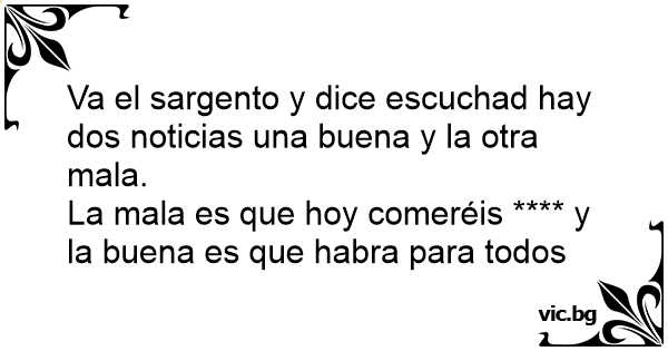 Va el sargento y dice escuchad hay dos noticias una buena y la otra mala.