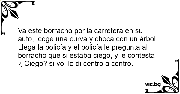 Llega la policía y el policía le pregunta al borracho que si estaba ciego, y le contesta