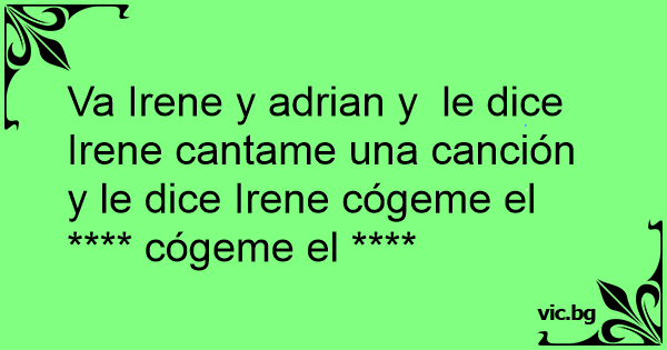Va Irene y adrian y le dice Irene cantame una canción y le dice Irene cógeme el **** cógeme el ****
