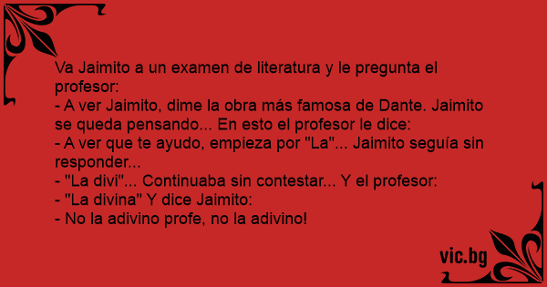 Va Jaimito a un examen de literatura y le pregunta el profesor: